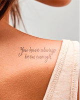 La phrase motivante « Tu as toujours été suffisant » dans une écriture fluide. Ce tatouage sert de rappel de l'estime de soi et de la force intérieure, parfait pour ceux qui embrassent l'amour-propre et croient en eux-mêmes.