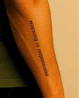 Ce tatouage typographique saisissant arbore la puissante phrase « Rien n'est impossible » soulignée par des traits stylisés qui soulignent son message. Un design épuré et efficace, un rappel quotidien de résilience, de détermination et de potentiel illimité.